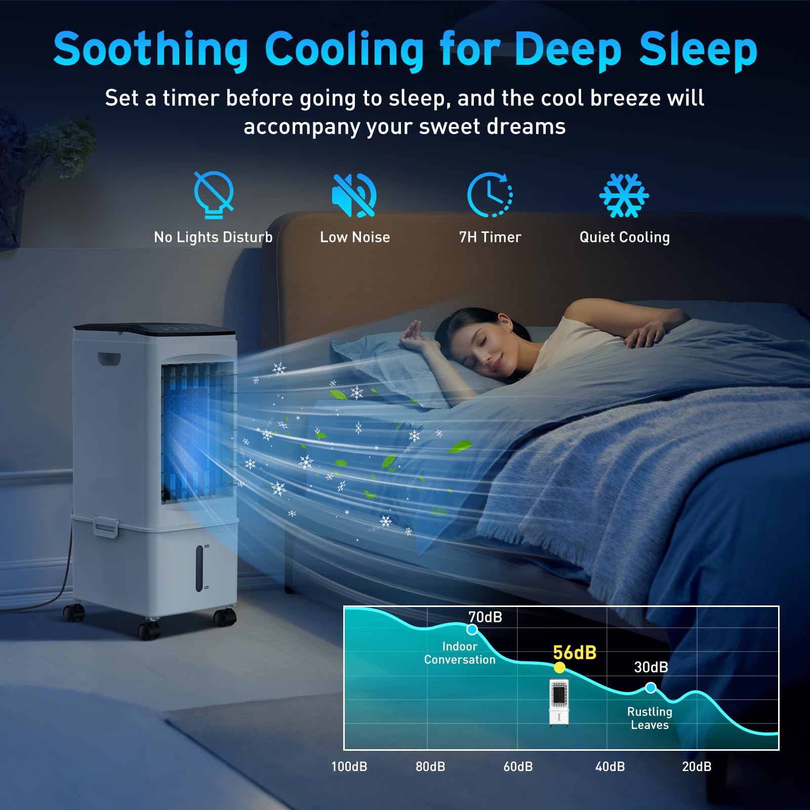 Con solo 60 W de consumo, este aire acondicionado portátil es económico y respetuoso con el medio ambiente. La carcasa de ABS+PP resistente, la rejilla antipolvo desmontable y la estructura de panal antihumedad aseguran una limpieza sencilla y una larga vida útil.📦 Portátil y práctico
