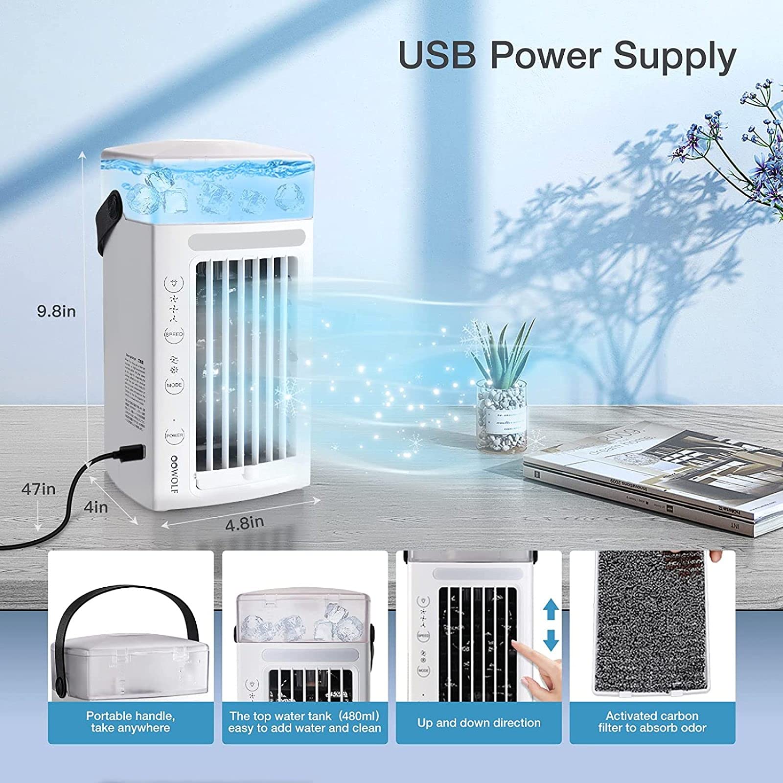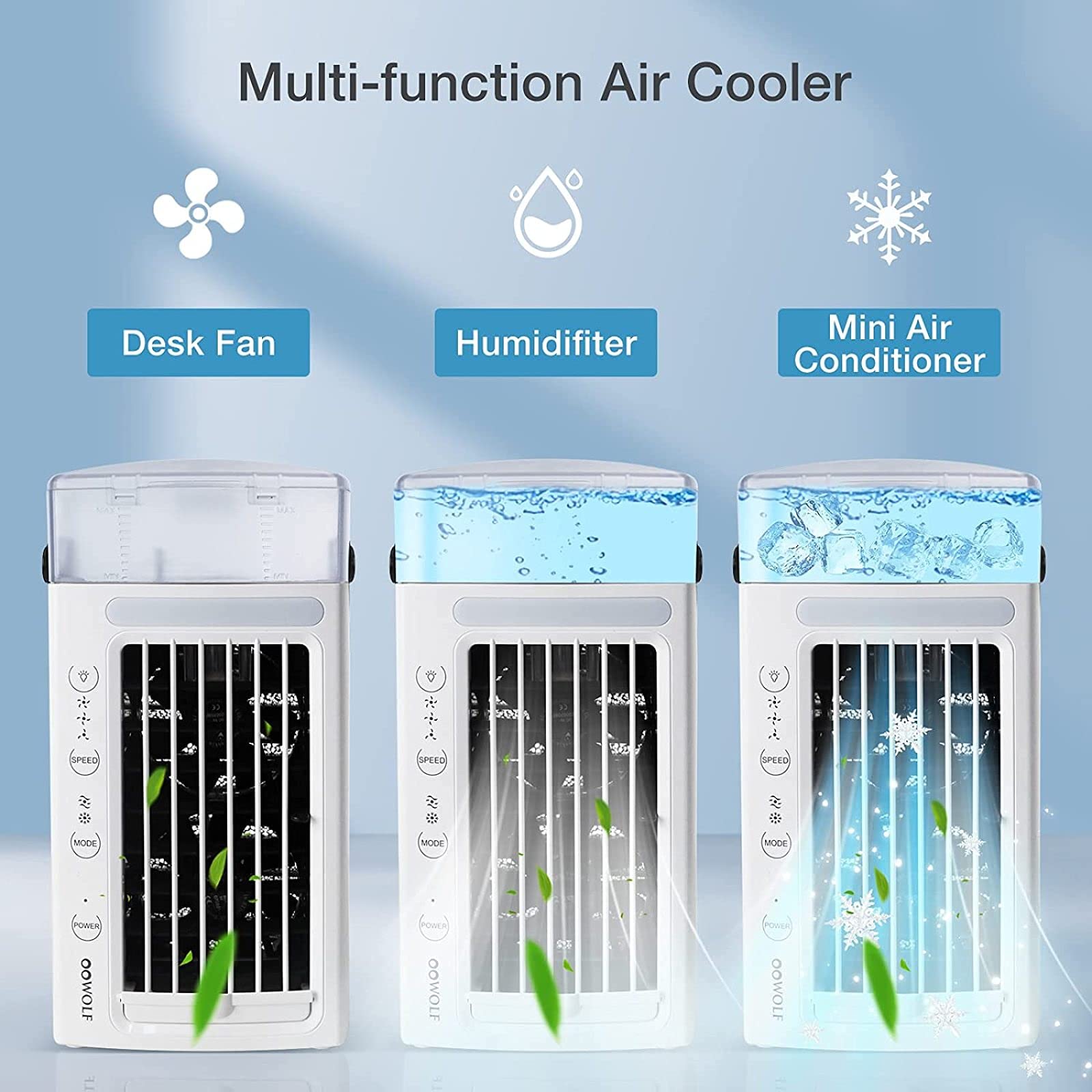 Aire Acondicionado Portátil Silencioso VVLXRIC – Enfriador de Aire con Ventilador de Hielo, 3 Velocidades, Humidificador Compacto para Oficina y Hogar