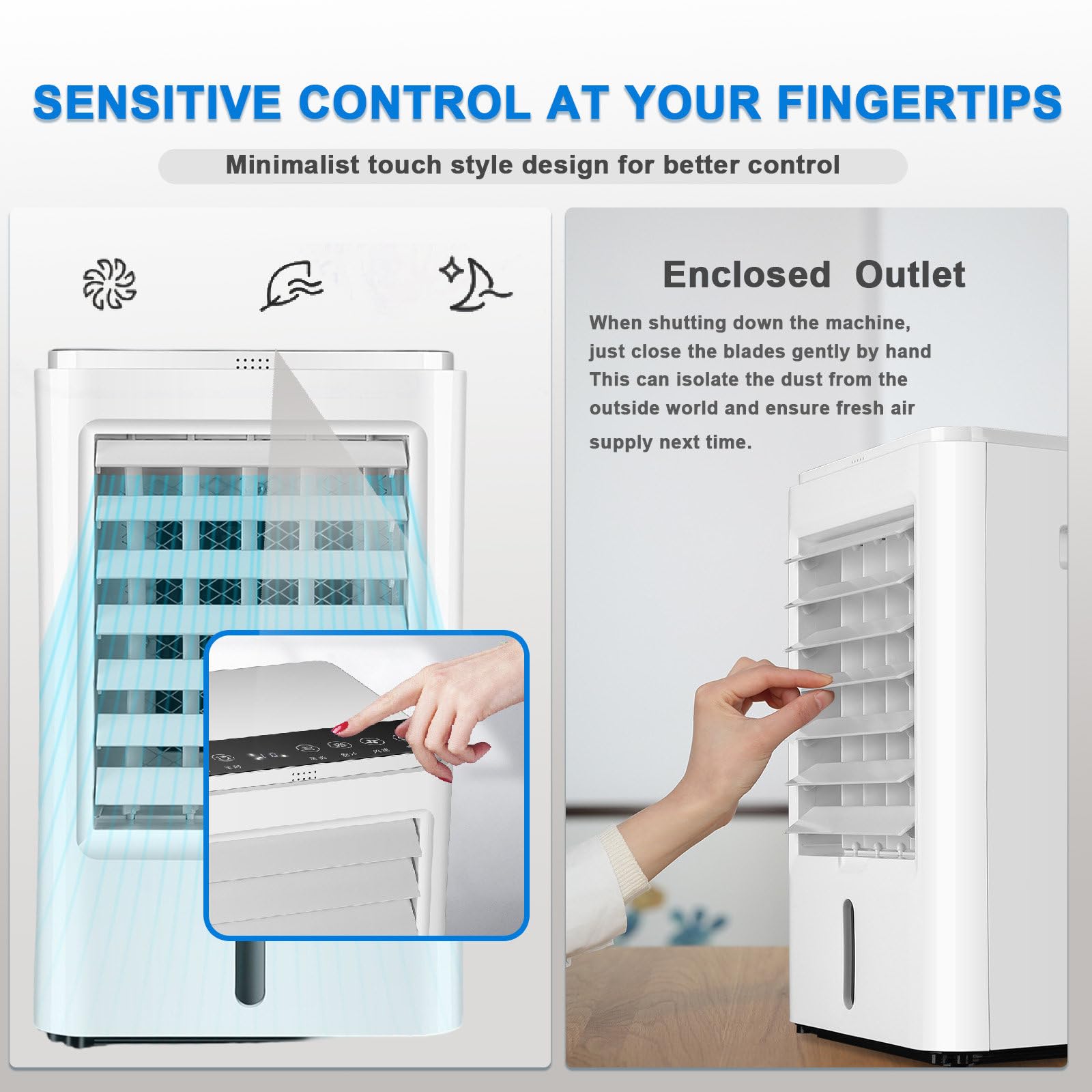 Función 4 en 1: Combina ventilador, humidificador, purificador de aire y refrigerador evaporativo en un solo dispositivo compacto.