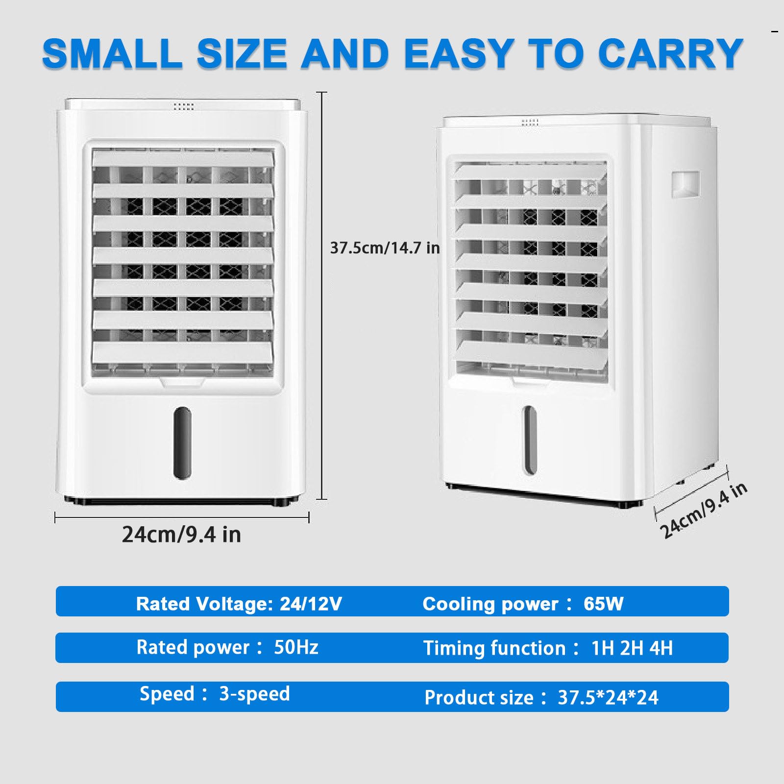 Aire Acondicionado Portátil 4 en 1 con Tanque de Agua de 4 L, Temporizador, 3 Velocidades y Control Remoto – Pedenencelia, 24 V