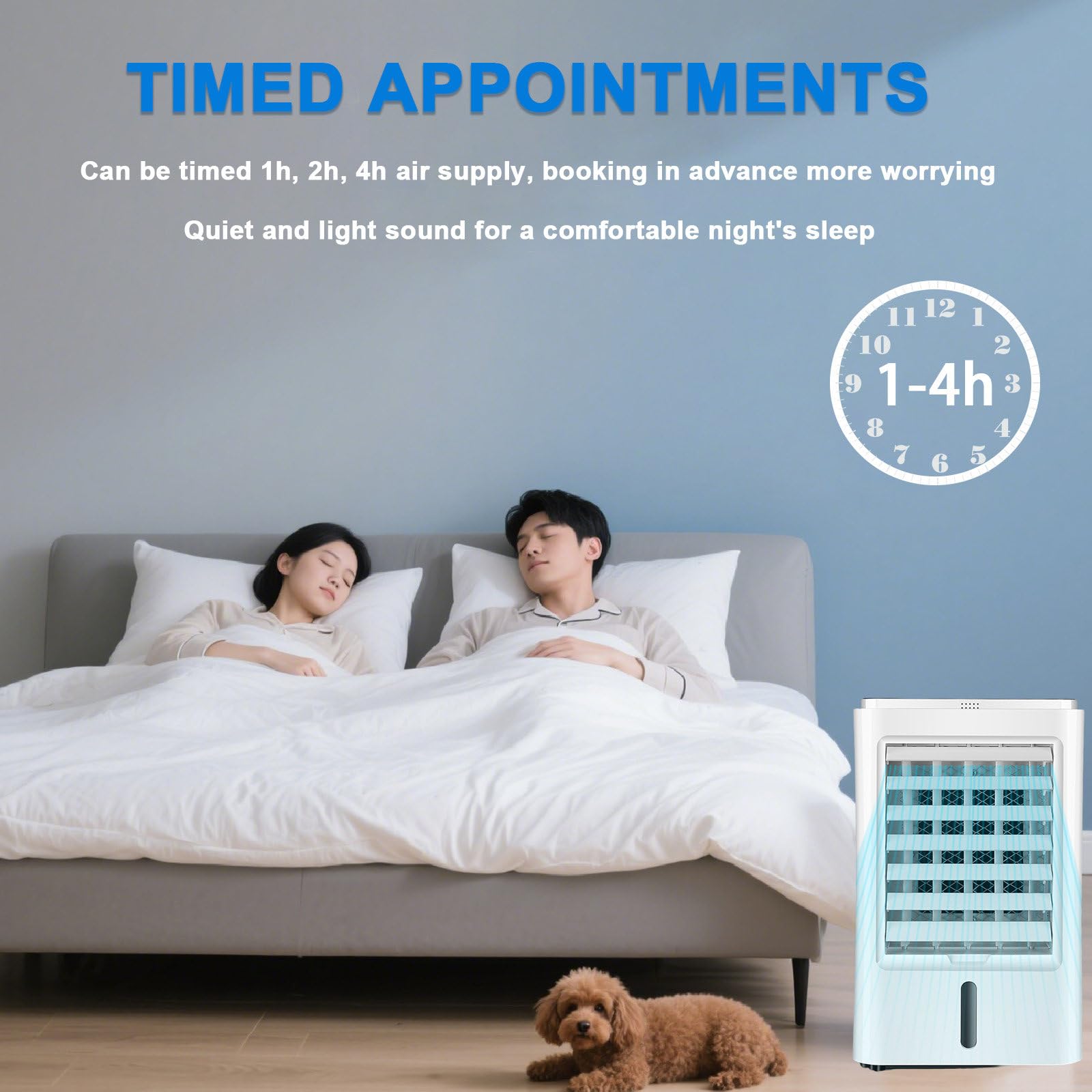 Este aire acondicionado portátil de Pedenencelia ofrece cuatro funciones integradas en un solo equipo: refrigeración por evaporación, ventilación, humidificación y purificación del aire. Diseñado para uso en interiores o vehículos, proporciona un ambiente confortable de forma silenciosa y eficiente.
