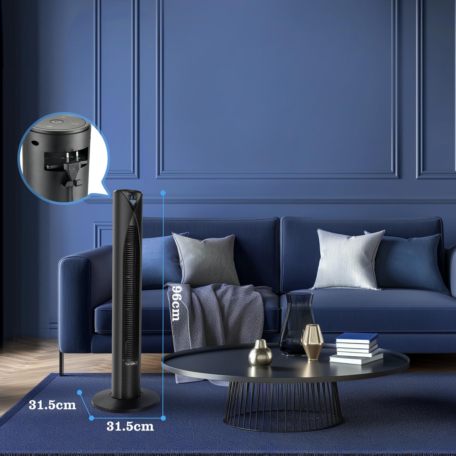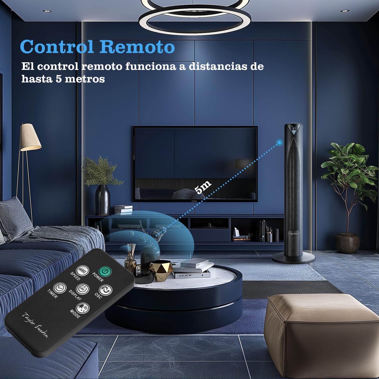 Ventilador de Torre Taylor Swoden 28 dB con Mando a Distancia, Pantalla LED y Temporizador 12 h – Oscilante 70°, 4 Modos, 3 Velocidades, Altura 96 cm, 45 W